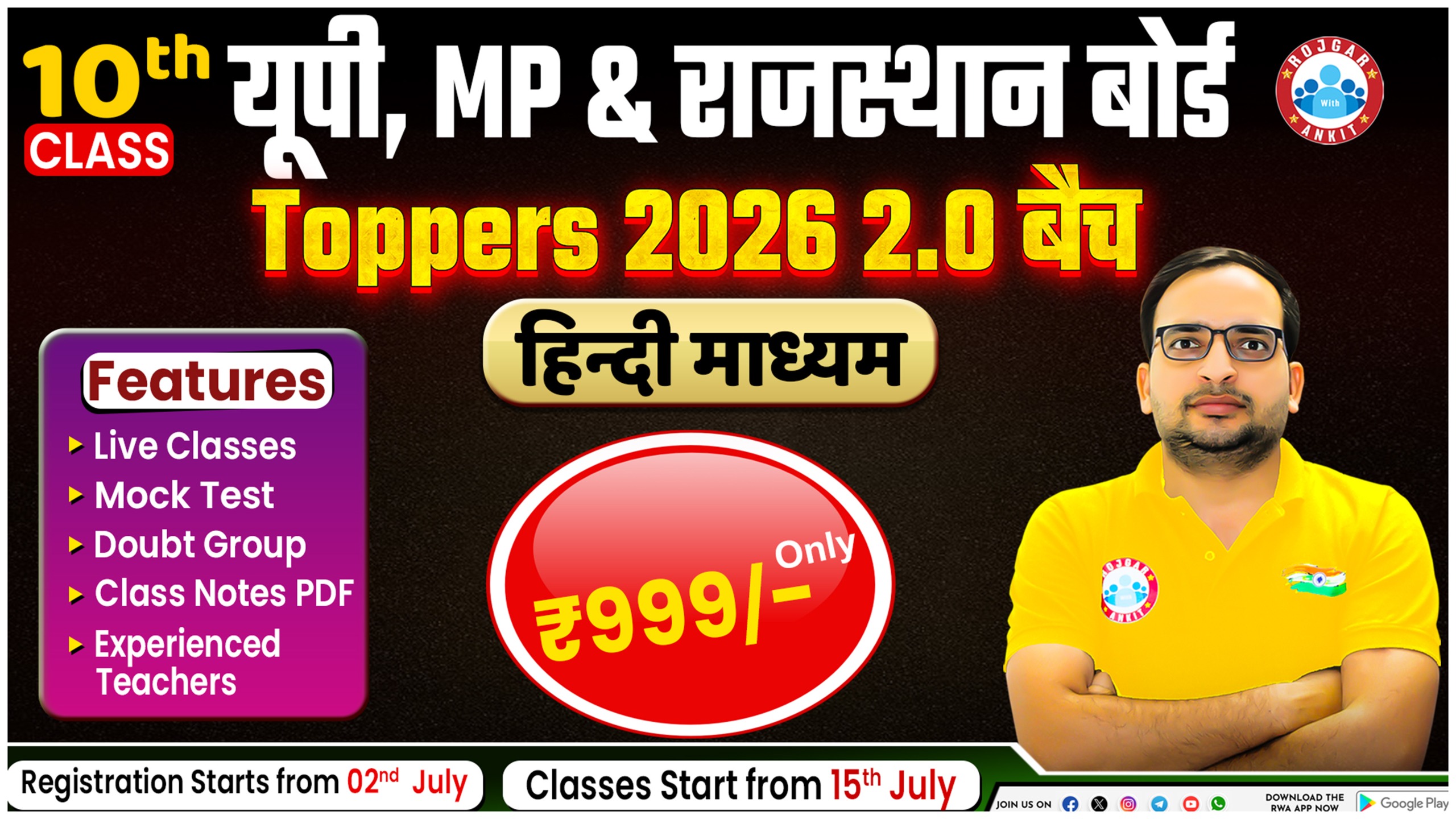 UP , MP , राजस्थान 10th Toppers 2026 ( 2.0 बैच ) *