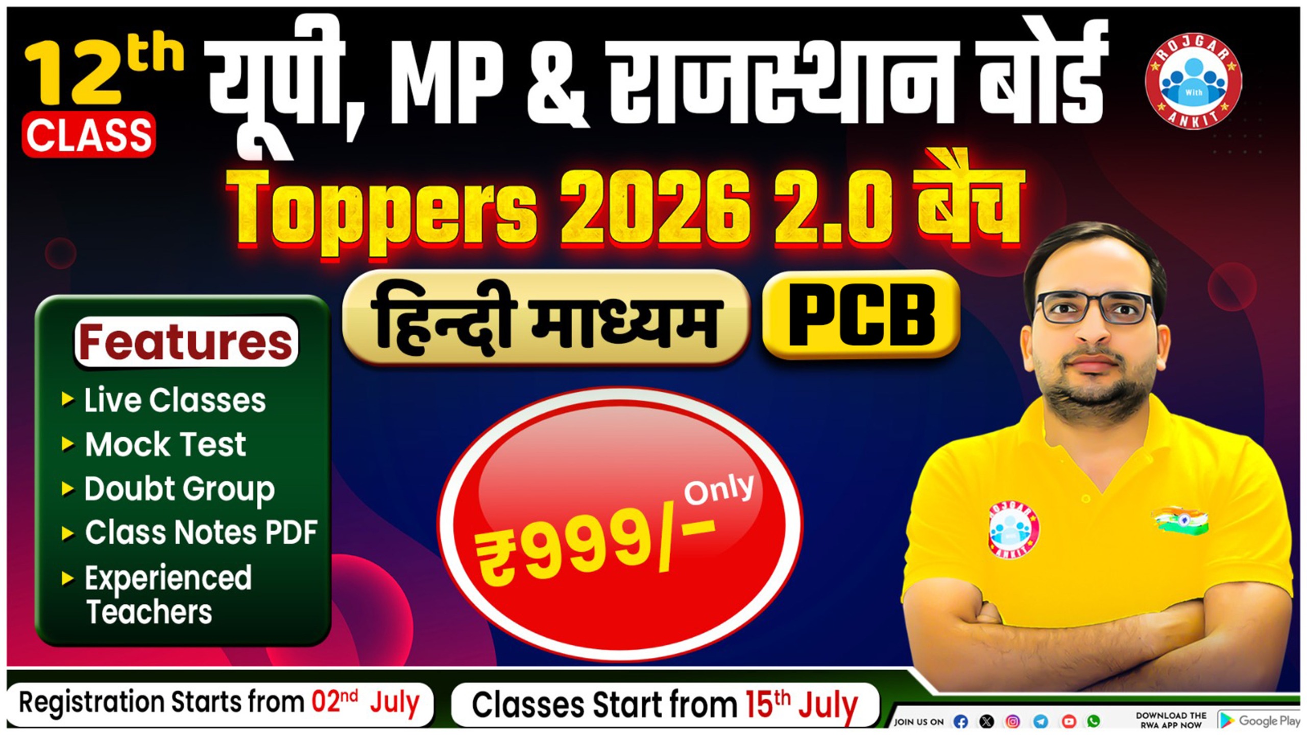 UP , MP , राजस्थान 12th PCM Toppers 2026 बैच